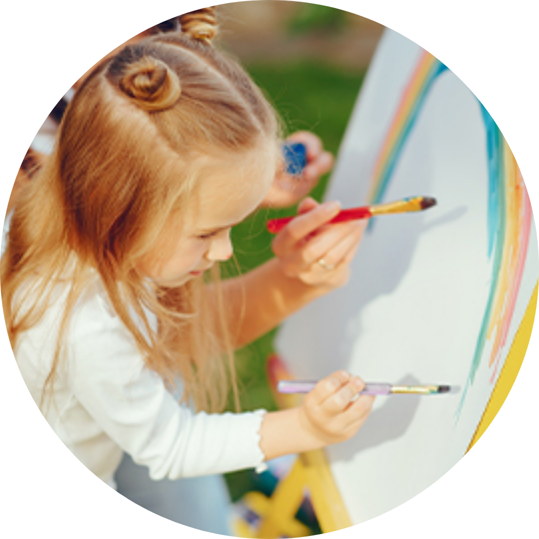 Desenvolvimento da criatividade e habilidades motoras através de atividades artísticas e desenhos.